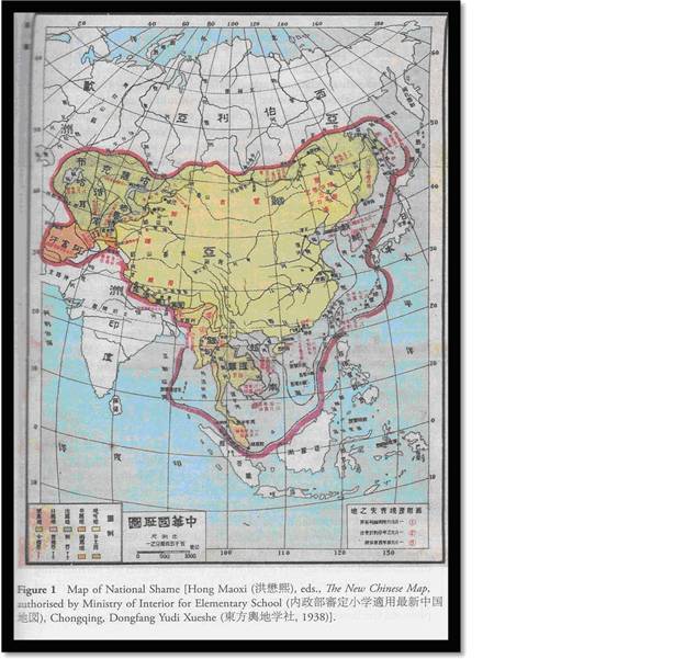 As Geoff Wade says: “None of the above wars are endorsed by current PRC policies, and some Chinese claim that the article represents only the views of radical hyper-nationalists. However, the claims to territories which this article avers need to be ‘recovered’ through warfare are long-standing and are remarkably congruent with a 1938 map of ‘China’s shame’ authorised by the Ministry of the Interior of the Republican Government which shows the areas torn from China by imperialists—European and Japanese. (See map below) The ‘lost’ Chinese territories on this map include not only the Russian Far East, the Ryukyus, Taiwan and the South China Sea, but also Korea, Vietnam, Cambodia, Laos, Thailand, the Malay Peninsula and Singapore, Myanmar, Nepal, parts of Pakistan and most of Central Asia.” Enough to make us all worry is it not?